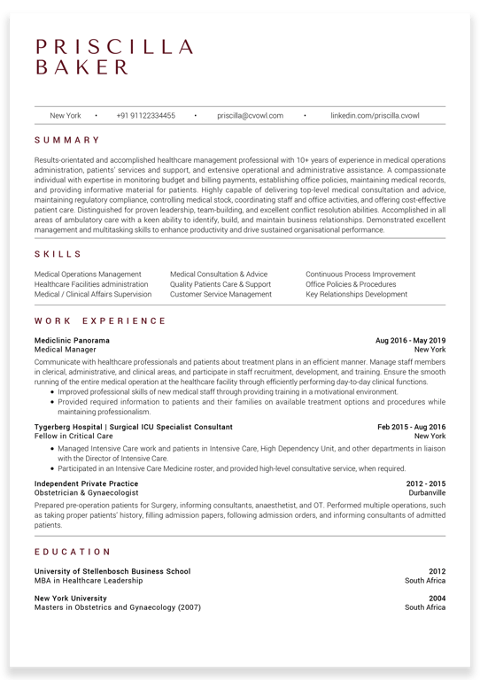 Tools like CVOwl bring to your fingertips an array of professional templates that you can use readily to recreate your resume. You can choose and use our ready-to-use designs with professional layouts so that your CV stands out. The aesthetic appeal of your CV improves. Additionally, there are customization options that can be used to tailor the template to suit your personal style and the requirements of the post.