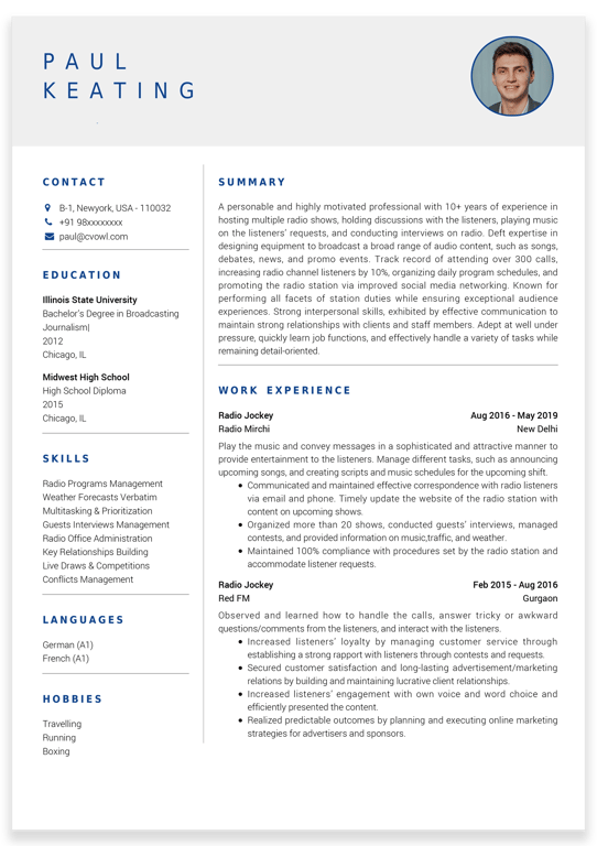 Our resume templates have built-in skills, achievements, and qualifications, even charts and graphs so that your resume looks good and well-presented. There is space to incorporate and integrate a professional photo to your resume. This helps promote your personal branding. Our tool helps you create a consistent design and look that will help you strengthen your personal branding even better.
